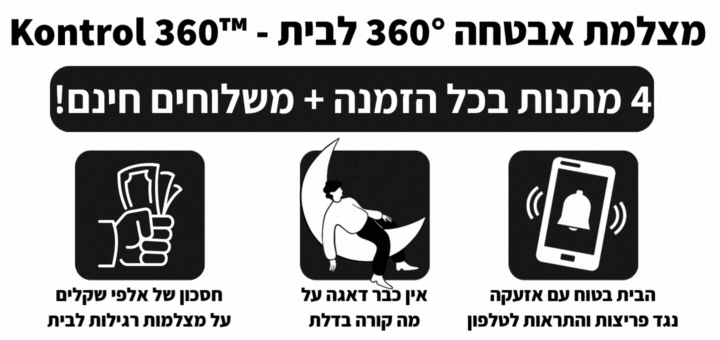 לקוחות מדווחים שהם מרגישים הרבה יותר רגועים מאז שהתקינו את המצלמת ™360 של Kontrol – פשוט כי אפשר לראות בכל רגע מי נמצא בבית, לדבר איתו, ולדעת שהבית תמיד בשליטה, גם מרחוק.